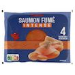 Saumon Atlantique fumé (Salmo salar), élevé en Norvège, fumé au bois de hêtre décongelé. Riche en acide gras oméga 3.