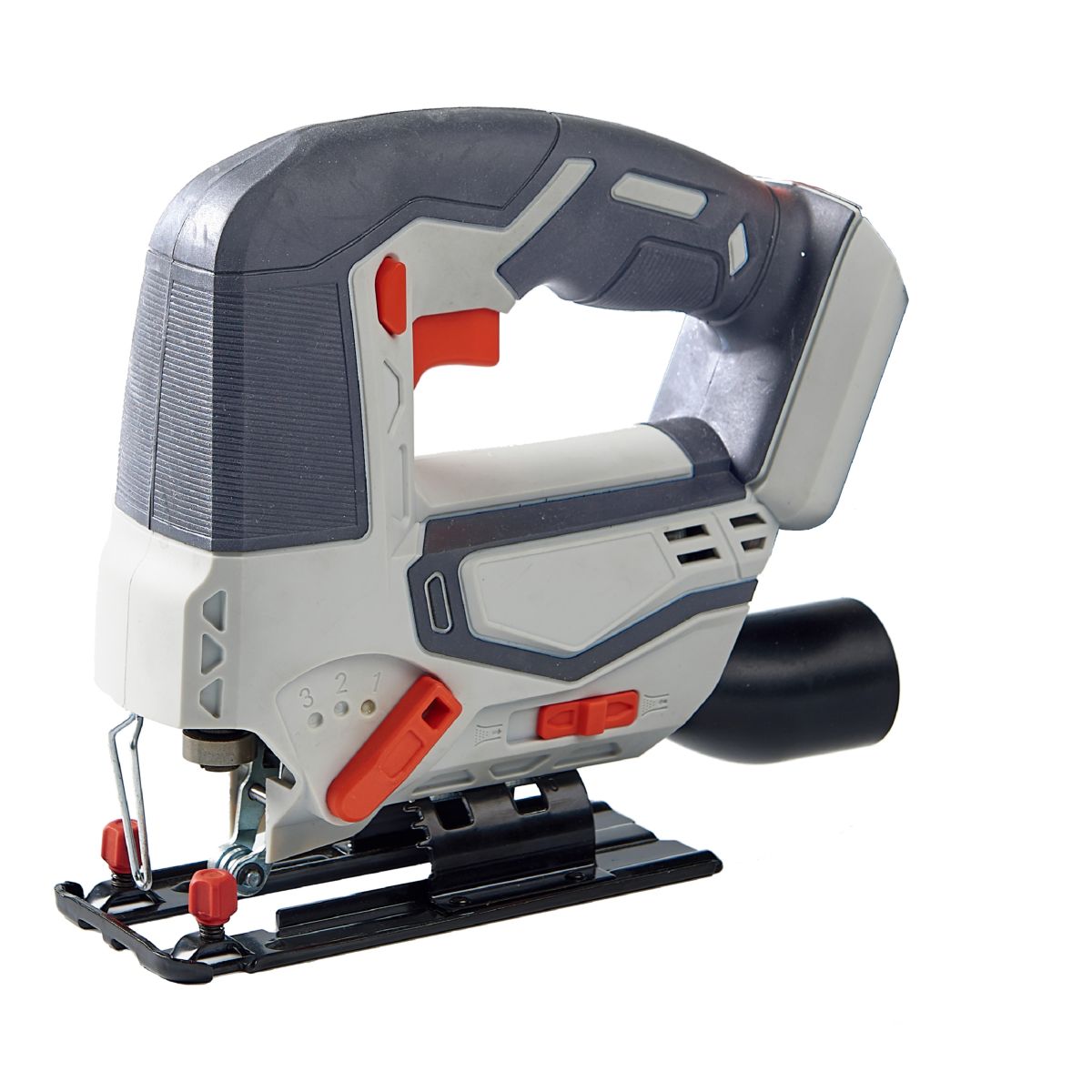 AUC JIG SAW 20V, 1PC, sans batterie au lithium, sans chargeur,Vitesse à vide : 0-2500spm, Longueur de course : 20mmMoteur 785, balancier, Capacité de coupe maximale : 80mm en bois, 6mm en acier, 12mm en plastique, Fonction de soufflage et d'aspiration, Plaque de base en acier réglable