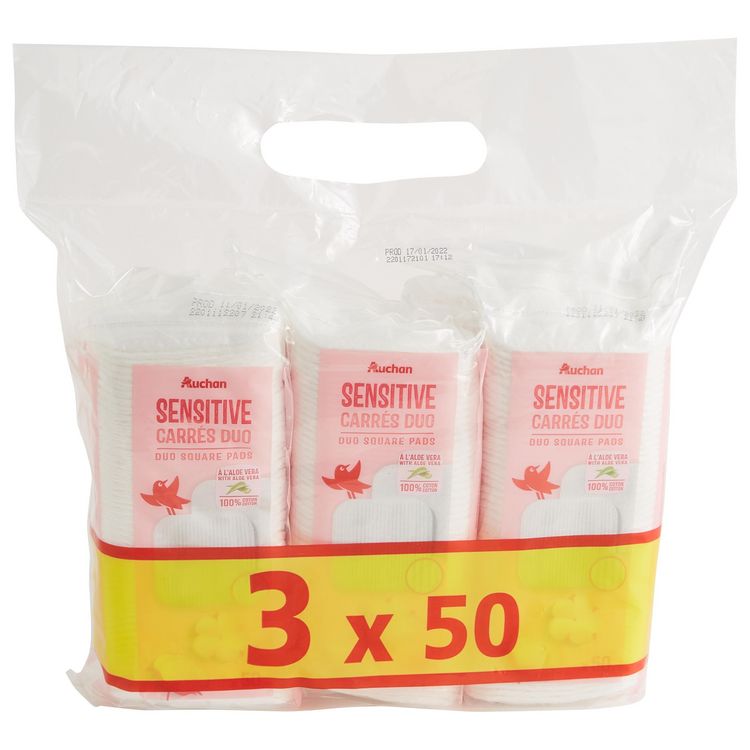 100% coton A l'aloe vera .Sensible Auchan s'engage dans la réduction d'emballage: 21% de plastique en moins x50