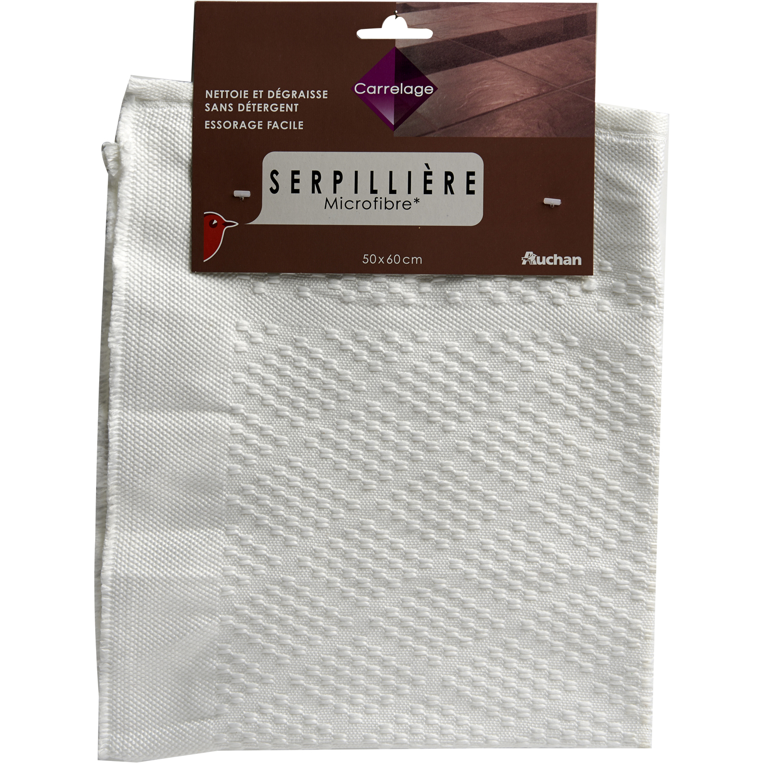 Serpillière microfibre gaufrée 50x60cm, nettoie et dégraisse sans détergent. SERPILLIERE MICROFIBRE CARRELAGES AUCHAN