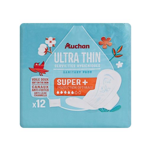 Restez fraîche toute la journée avec les serviettes hygiéniques Auchan ! Super absorbantes, elles vous offrent jusqu'à 8 heures de protection grâce à leur forme anatomique avec ailettes. Ultra fines et recouvertes d'un voile doux, elles vous garantissent un maximum de confort et de discrétion. Et grâce à leur emballage individuel sous pochettes, emportez-les partout avec vous !