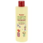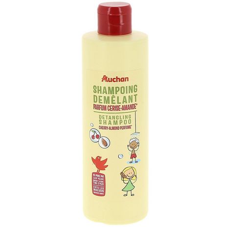 Plongez vos enfants dans un monde fruité avec le Shampoing 2en1 Auchan Kids au délicieux parfum d'amande et de pomme Shampoing et Démêlant 2en1Ce shampoing démêlant combine les bienfaits d'un shampoing et d'un démêlant dans une seule formule pratique. Idéal pour simplifier la routine de vos enfants et gagner du temps sous la douche. Ne Pique Pas les Yeux :Sa formule ne pique pas les yeux. Vos enfants peuvent ainsi profiter pleinement de leur moment de bain en toute sécurité, et sans larmes.Évite les Nœuds :Grâce à sa formule démêlante, ce shampoing aide à éviter la formation de nœuds et de cheveux emmêlés, pour des cheveux démêlés et faciles à coiffer, même après le lavage.Tolérance Optimale et Sécurité de nos formules Testé sous contrôle dermatologique et ophtalmologique, le Shampoing 2en1 Auchan Kids vous garantit une composition sûre et un choix rigoureux des ingrédients. Scannez pour découvrir sa note sur votre application de notation favorite! Conseils d'utilisation Appliquez une petite quantité de shampoing sur les cheveux mouillés de vos enfants, faites mousser délicatement, puis rincez abondamment à l'eau tiède. Répétez l'opération si nécessaire.