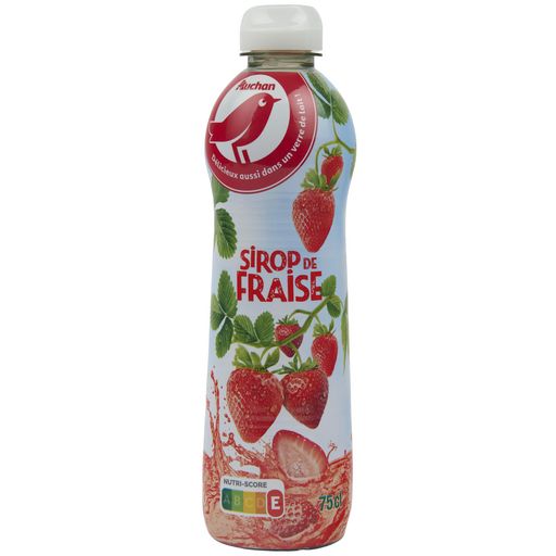 Ingrédients : Sucre, jus de fruits à base de concentrés 25% (fraise 15%, citron, sureau), eau, acidifiant : acide citrique, arôme.