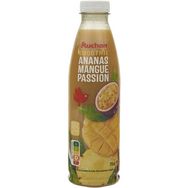 Ingrédients : Jus d'ananas 48%, purée de mangue 20%, purée de banane 15%, purée de pomme 10%, purée de fruit de la passion 7%.