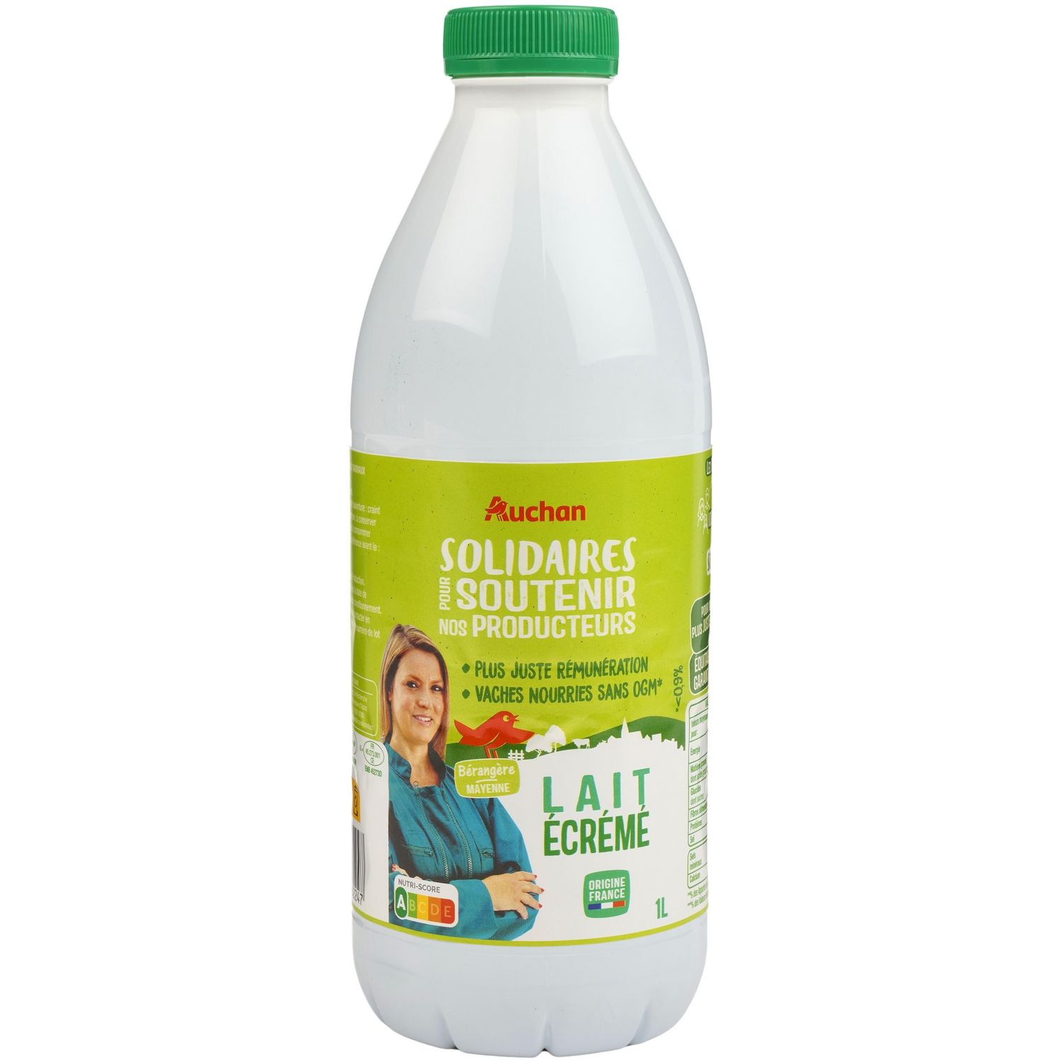 Ingrédients : LAIT écrémé stérilisé UHT issu d’animaux nourris sans OGM (< 0.9%) Elaboré à partir du lait origine France.