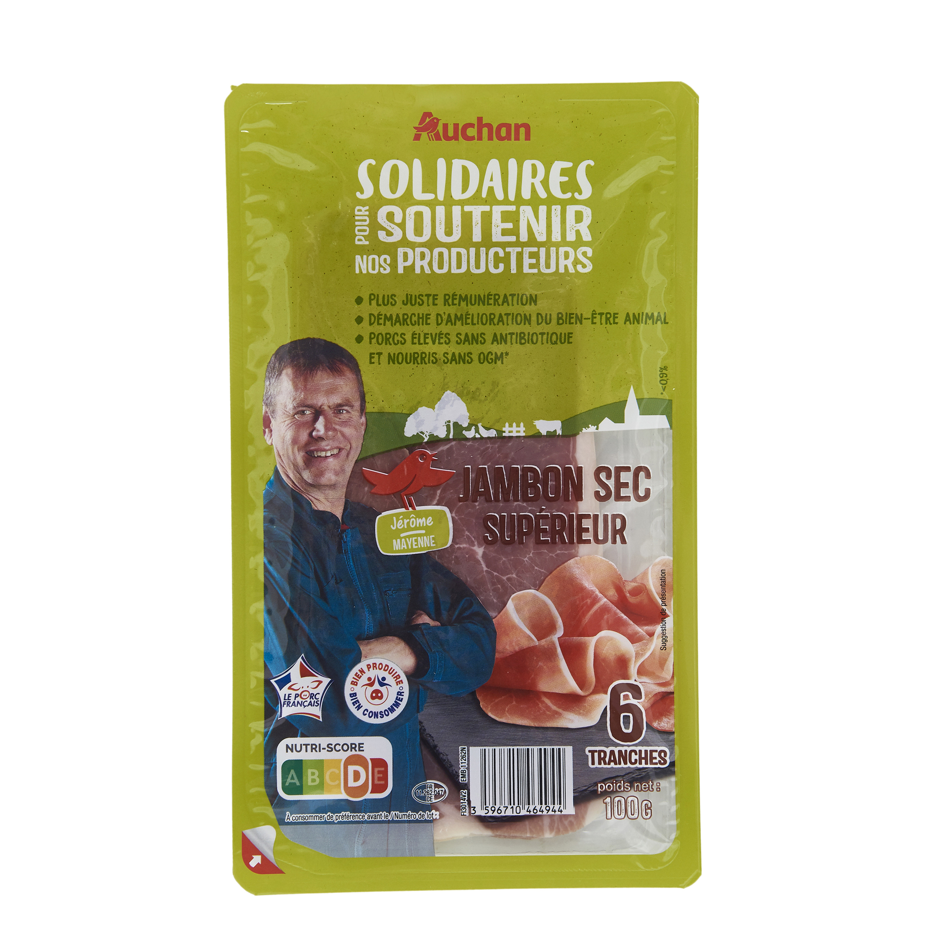 Ce produit de charcuterie est issu d'élevages français, engagés dans la filière "Bien Produire Bien Consommer" qui a pour vocation de garantir le bien être des porcs, sans traitement antibiotiques, nourris sans OGM, dont la nourriture est produite pour partie autour de la ferme. Par ailleurs, Auchan