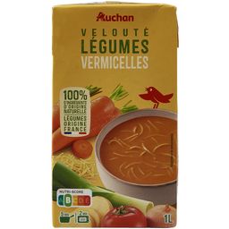 Velouté de légumes et vermicelles cuits, potage prêt à consommer