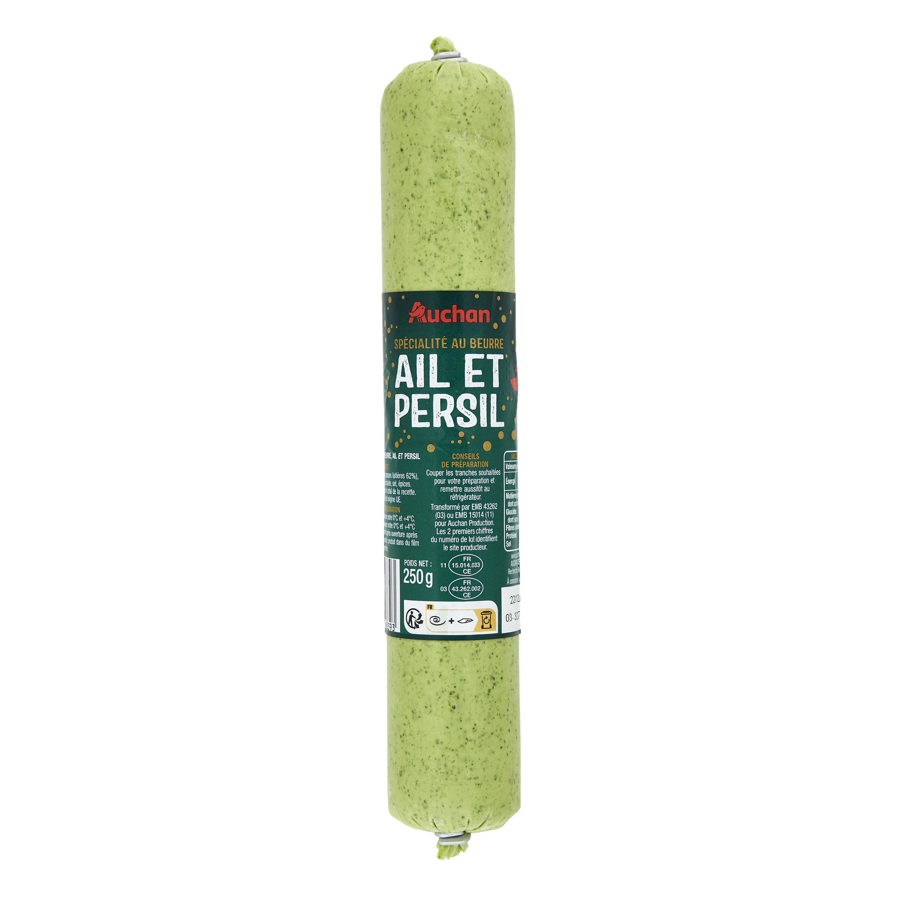 Notre préparation à base de beurre, ail et persil AUCHAN, est l'indispensable de vos recettes festives. Elle apportera une touche savoureuse à vos sauces, coquillages et grillades.