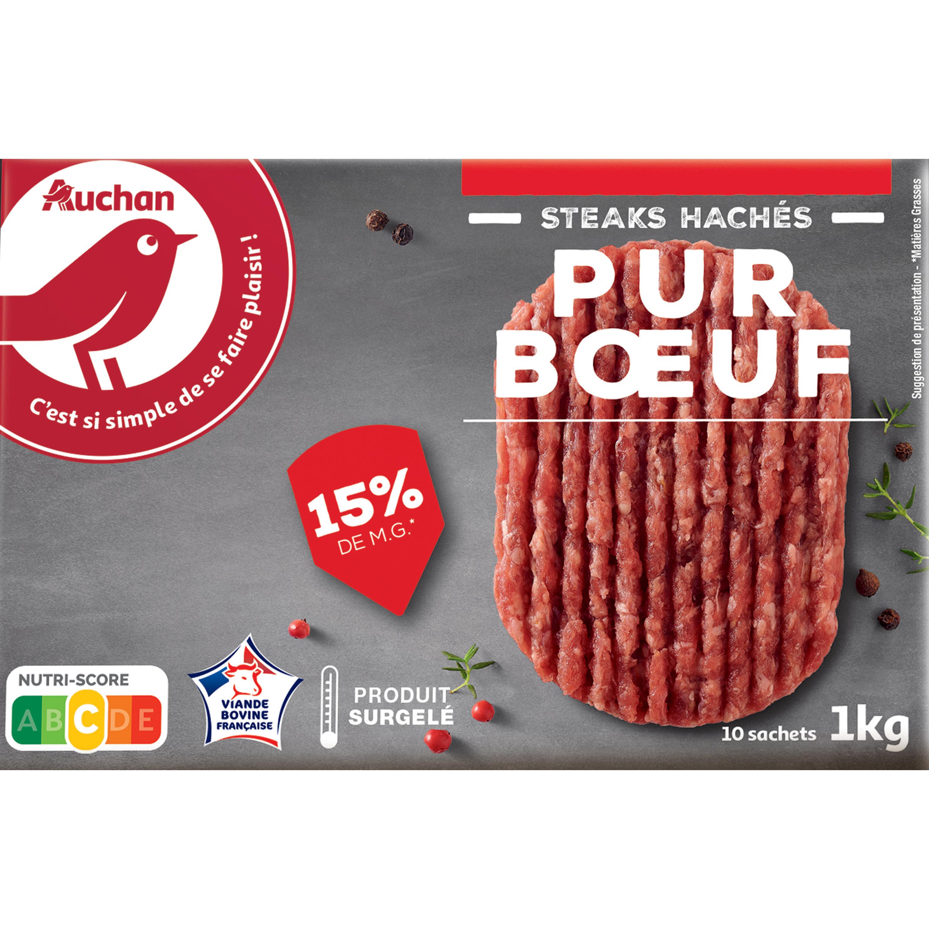 Steaks hachés pur bœuf (origine France, élaborés en France), surgelés