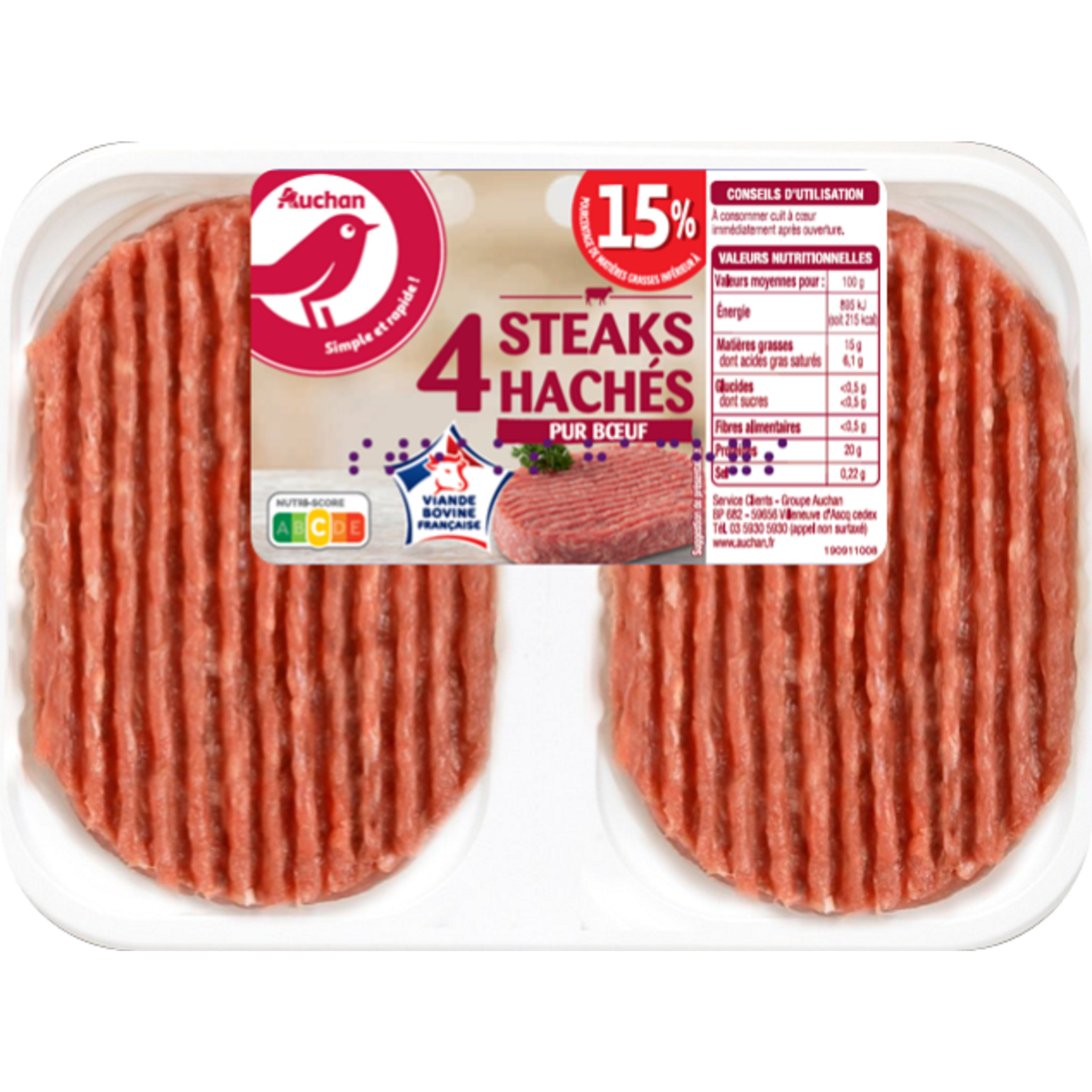steak haché strié 15% 4x100g Auchan