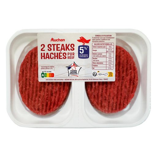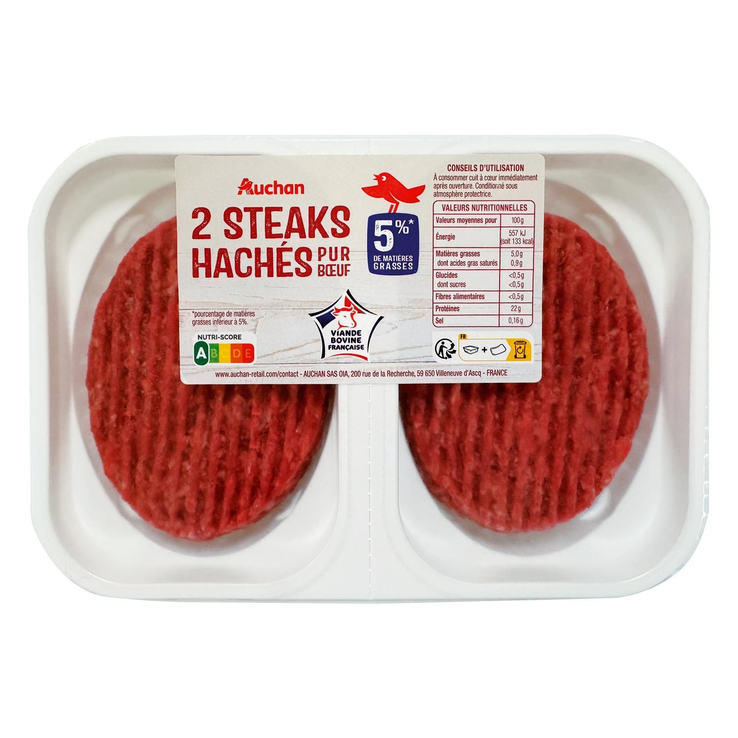 AUCHAN Steaks hachés pur bœuf 5%MG 0200 kg