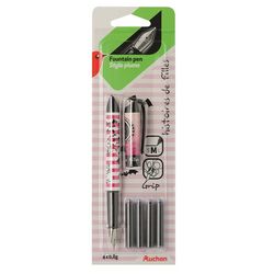 Stylo plume avec capuchon. Plume en acier + 4 cartouches.