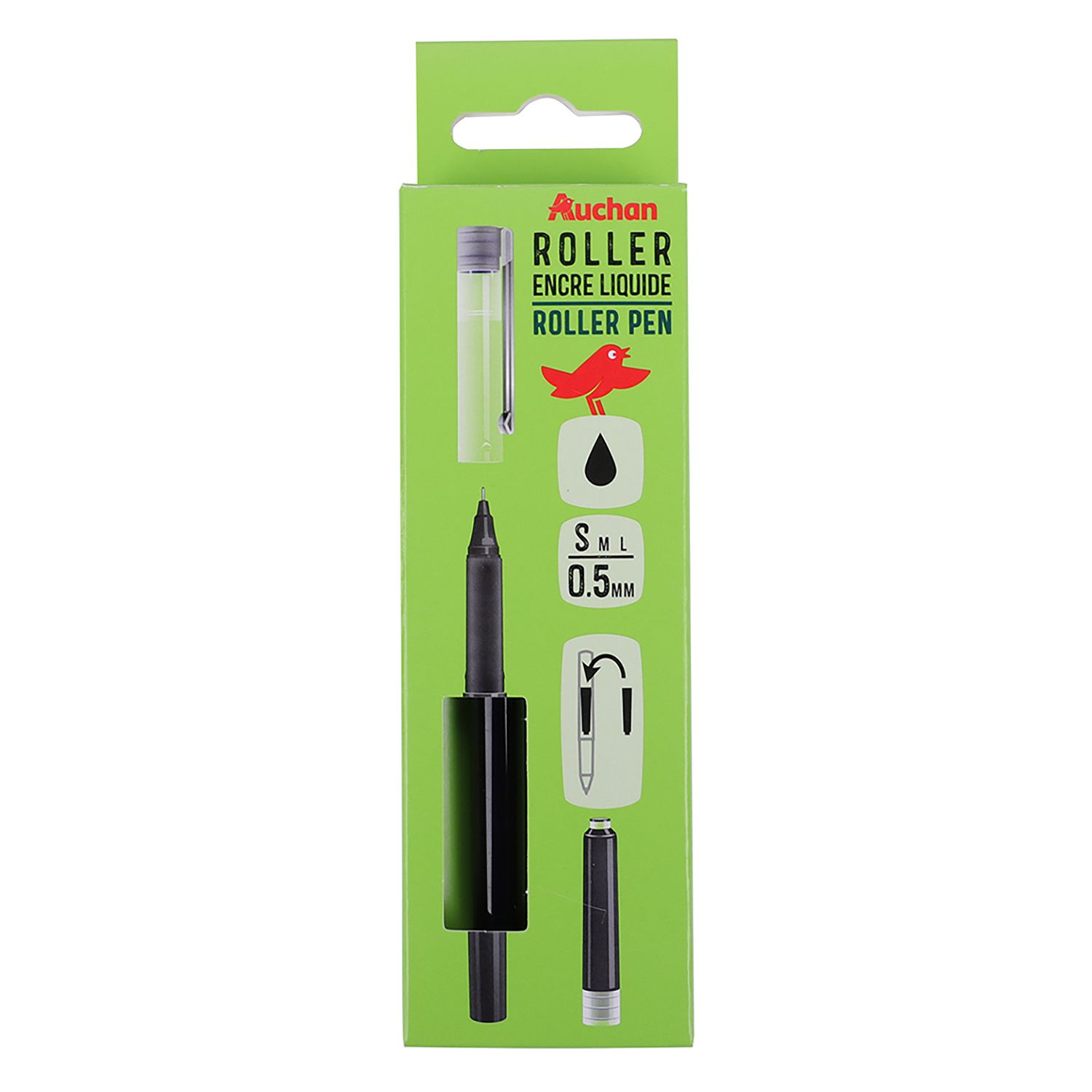 Stylo roller pointe fine 0.5mm noir + 1 recharge