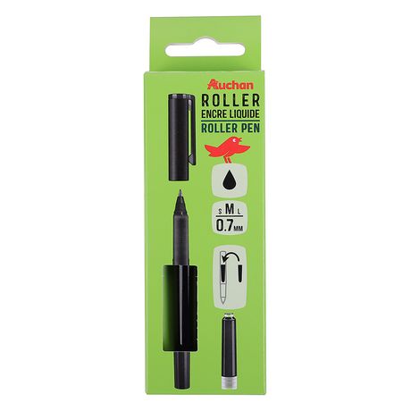Stylo roller pointe moyenne 0.7mm Noir + 1 recharge
