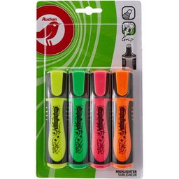 Conçus pour tous vos travaux d'annotations et de surlignages, ces 4 surligneurs fluo possèdent une pointe biseautée et un grip en caoutchouc pour un excellent confort d'écriture. Le lot contient : 1 fluo jaune, 1 fluo vert, 1 fluo rose, 1 fluo orange.