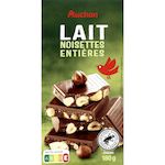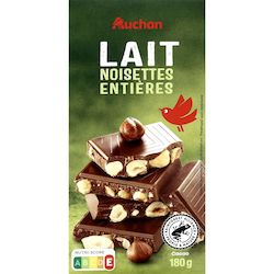 Contrairement à la vache violette, chez Auchan lorsqu'on dit chocolat avec noisettes entières, alors on a du chocolat avec beaucoup de noisettes entières... Il serait bien que les marques officielles mettent plus de noisettes dans leurs chocolats, on aurait moins l'impression d'être des vaches à lait...