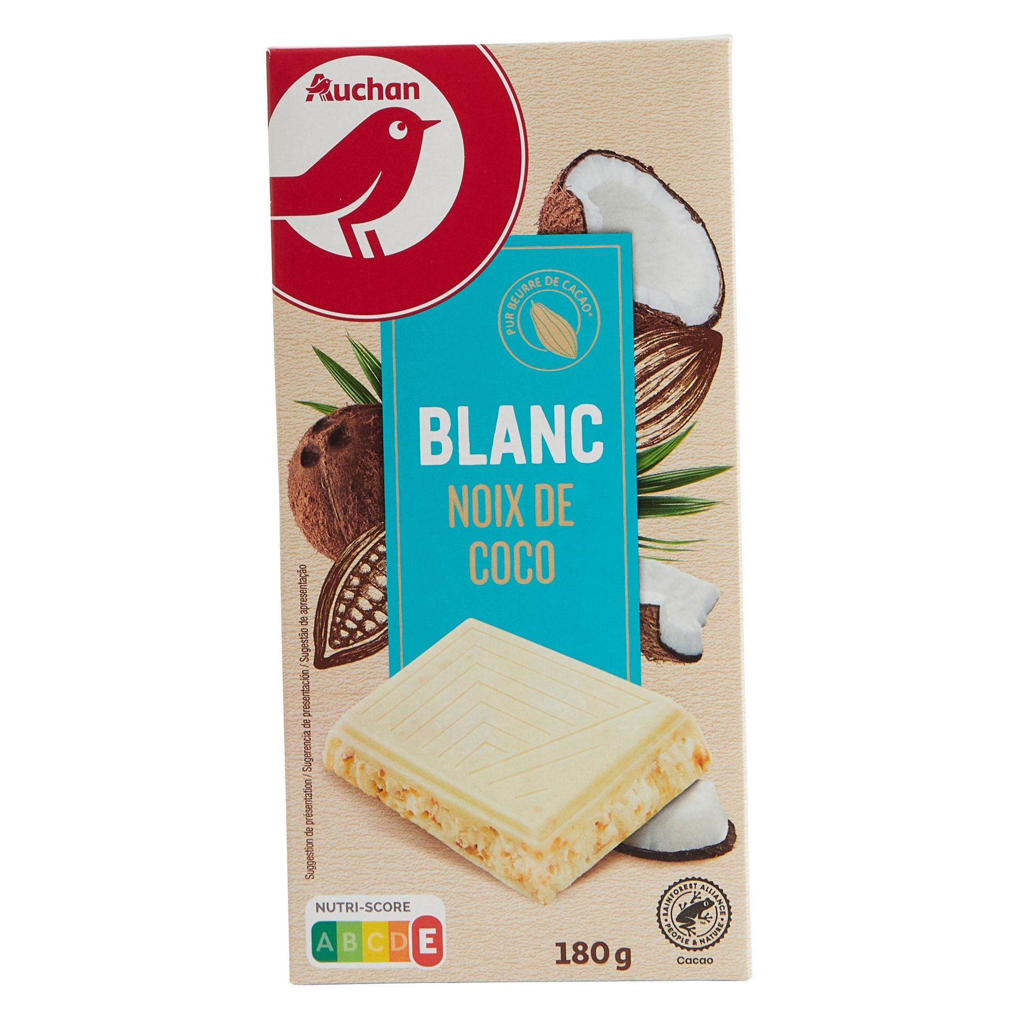 Chocolat blanc à la noix de coco caramélisée.*Pur beurre de cacao.