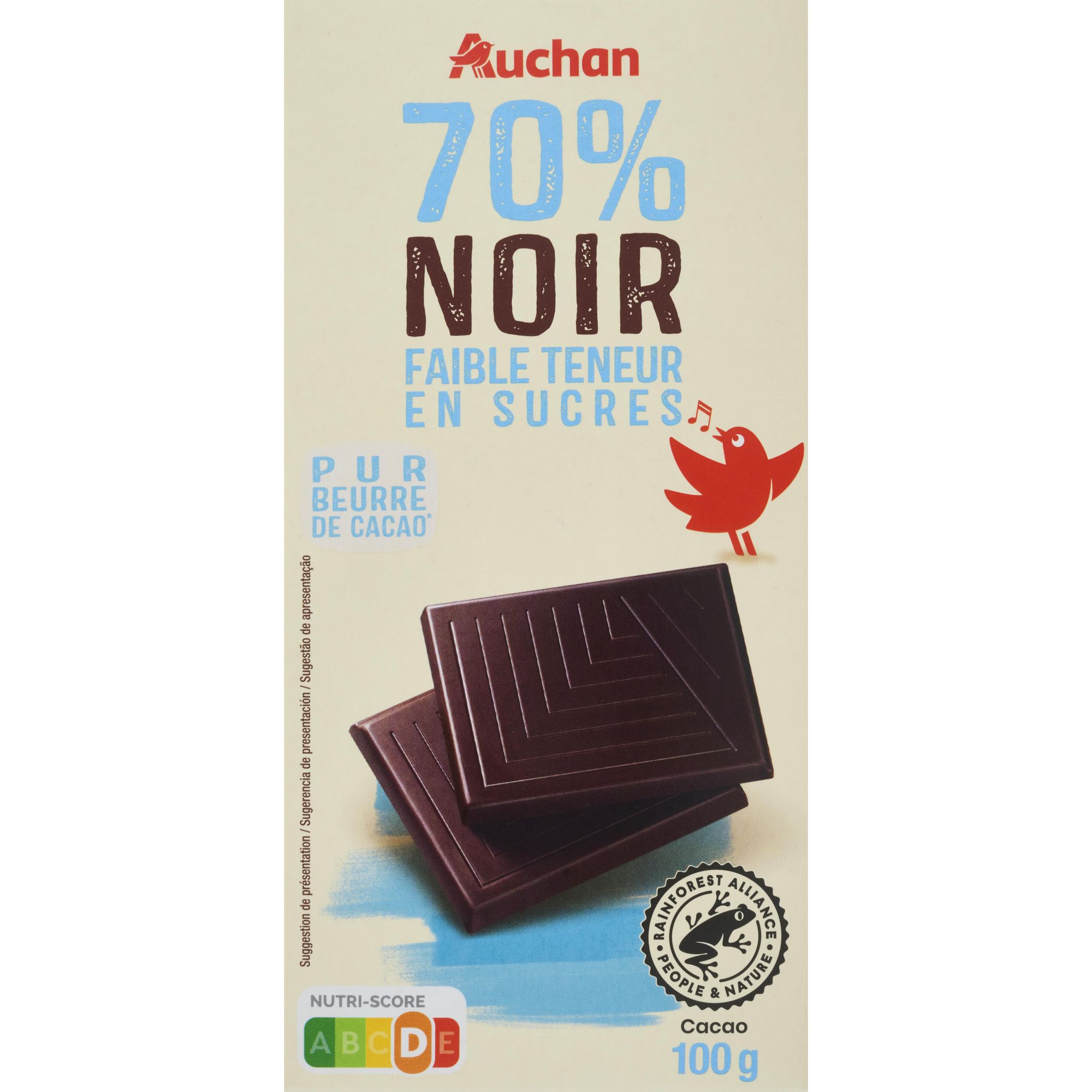 Tablette de chocolat noir 70% cacao faible teneur en sucres
