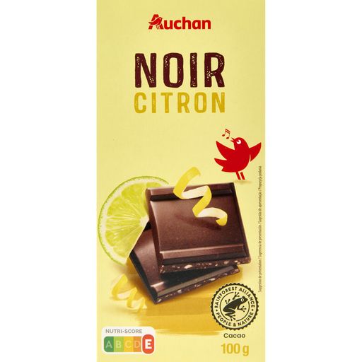 Chocolat noir aux zestes de citron confits.Cacao certifié rainforest alliance
