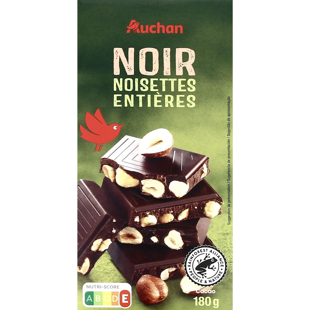 Rapport qualité prix excellent pour cette tablette au chocolat auchan noir bien garnie de noisettes. Très bon produit