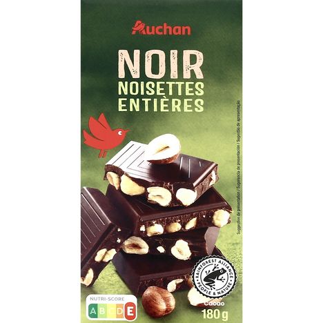 Tablette de chocolat noir auchan aux noisettes