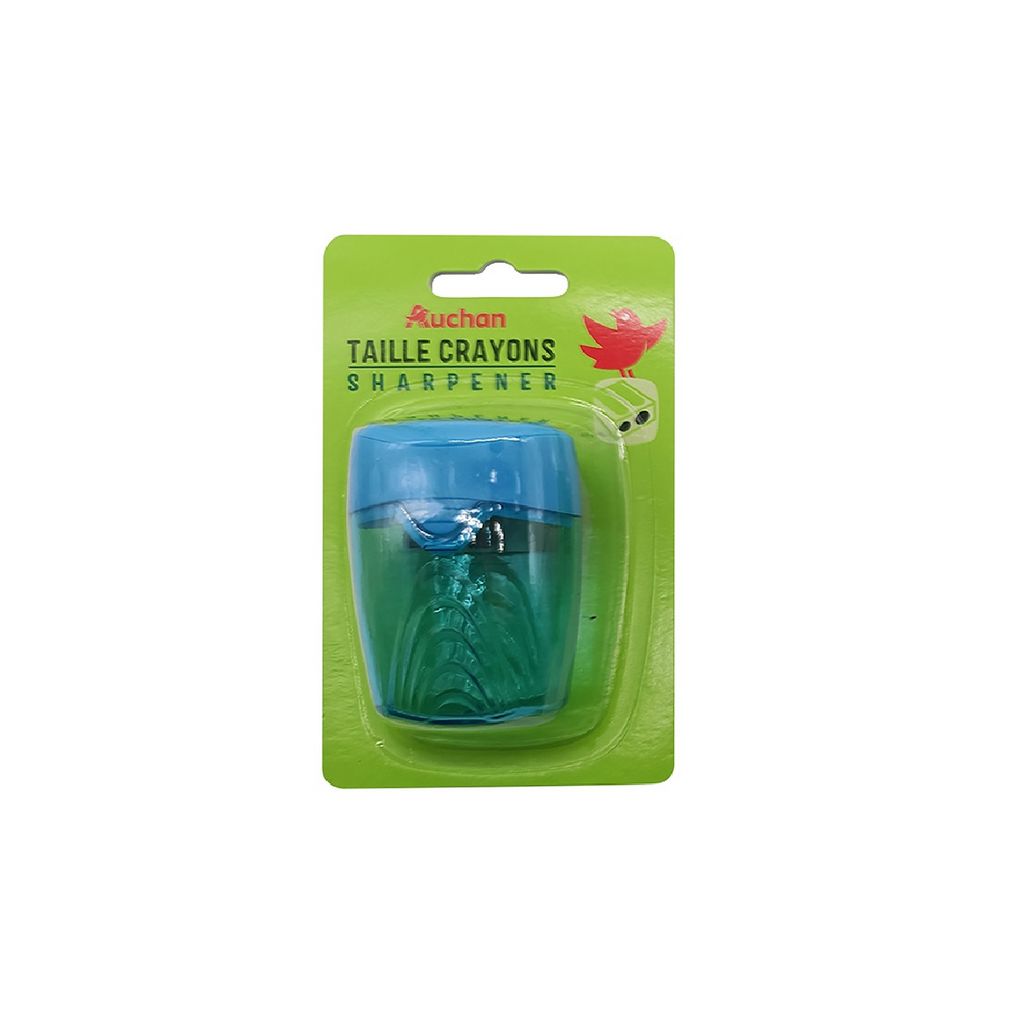 En savoir +Avec son design transparent, les écoliers vont vite adopter ce taille-crayon décliné dans une gamme de couleurs fun et tendance. Incontournable dans la liste des fournitures scolaires et très utile tout au long de l’année, il est fonctionnel et facile à prendre en main et possède 2 trous pour tailler les crayons de couleur ou à mines graphites de différentes tailles (large ou moyenne). Ses lames en acier assurent un aiguisage de qualité à chaque utilisation. Pour un travail propre, plus besoin de se déplacer à la corbeille à papier, il est doté d’un grand réservoir pour récupérer les résidus. Sa forme ergonomique permet une bonne prise en main et se glisse facilement dans une trousse, une poche de sac à dos ou un cartable. En plastique et métal.