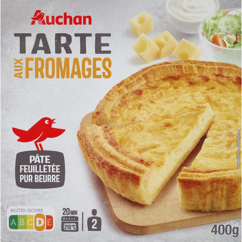 Ingrédients : Pâte feuilletée 35,9% [farine de BLÉ, beurre 9,1% (LAIT origine UE et/ou Royaume-Uni), eau, sel, gluten de BLÉ], LAIT entier (origine France), ŒUFS, comté 5,7% (LAIT origine France), emmental 5,7% (LAIT origine UE), fromage blanc 5,4% (LAIT origine France), crème fraîche (LAIT origine France), blancs d'ŒUFS, amidon modifié de maïs, sel, muscade, poivre. Traces éventuelles de poissons, mollusques, crustacés, céleri, moutarde, soja et fruits à coque.