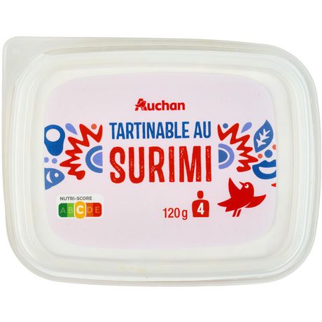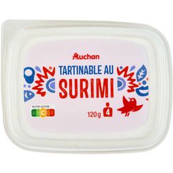 Préparation tartinable à base de surimi et de crabe tourteau, aromatisée.