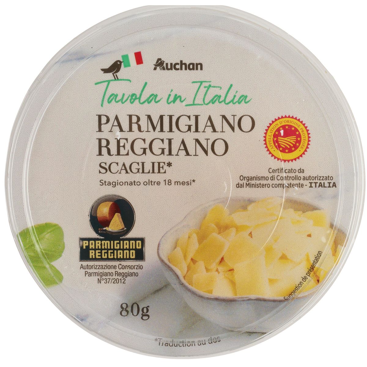 Découvrez l'authenticité de l'Italie avec le Parmigiano Reggiano en copeaux Auchan Tavola in Italia !Un fromage d'exception affiné pendant 18 mois. Présenté en copeaux délicats et pratiques de 80g, il est prêt à sublimer toutes vos créations culinaires.