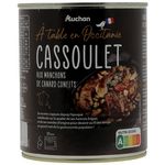 Ingrédients : Haricots lingots (origine France) 36.7%, eau, manchons de canard confits 19% (manchons de canard origine France, sel), saucisses de Toulouse grillées 16.6% (viande et gras de porc (origine France), eau, boyau naturel de porc, sel, poivre), purée de tomates double concentrée, graisse de canard 0.35%, ail, sel, poivre.