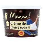 Une crème, à base de lait collecté en France, AOP de Bresse, conditionnée en France, épaisse, entière avec 33% de matières grasses, dans un grand pot 40cl