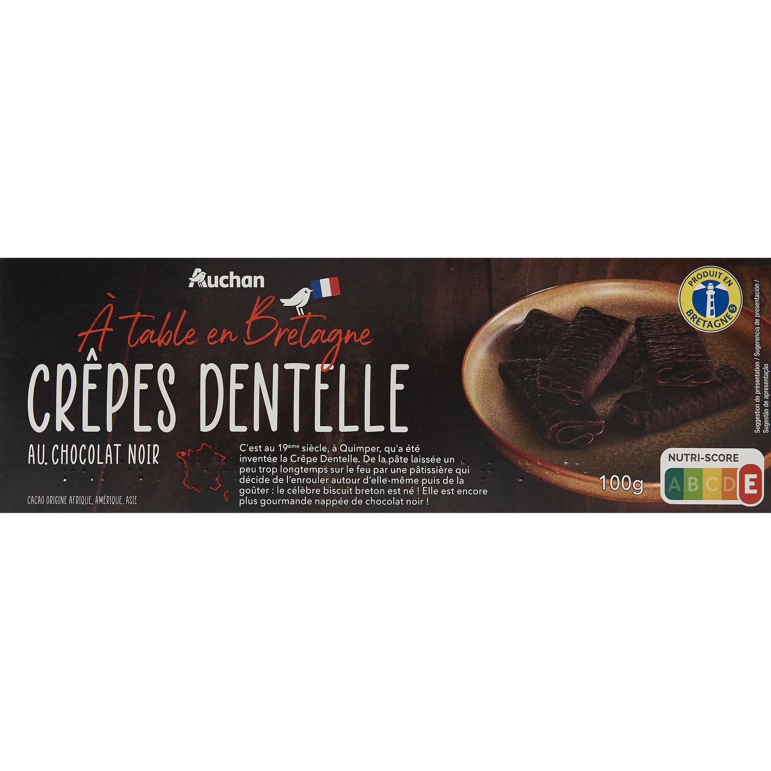 Crêpe dentelle enrobée de chocolat noir.Cacao origine Afrique, produit en bretagne.