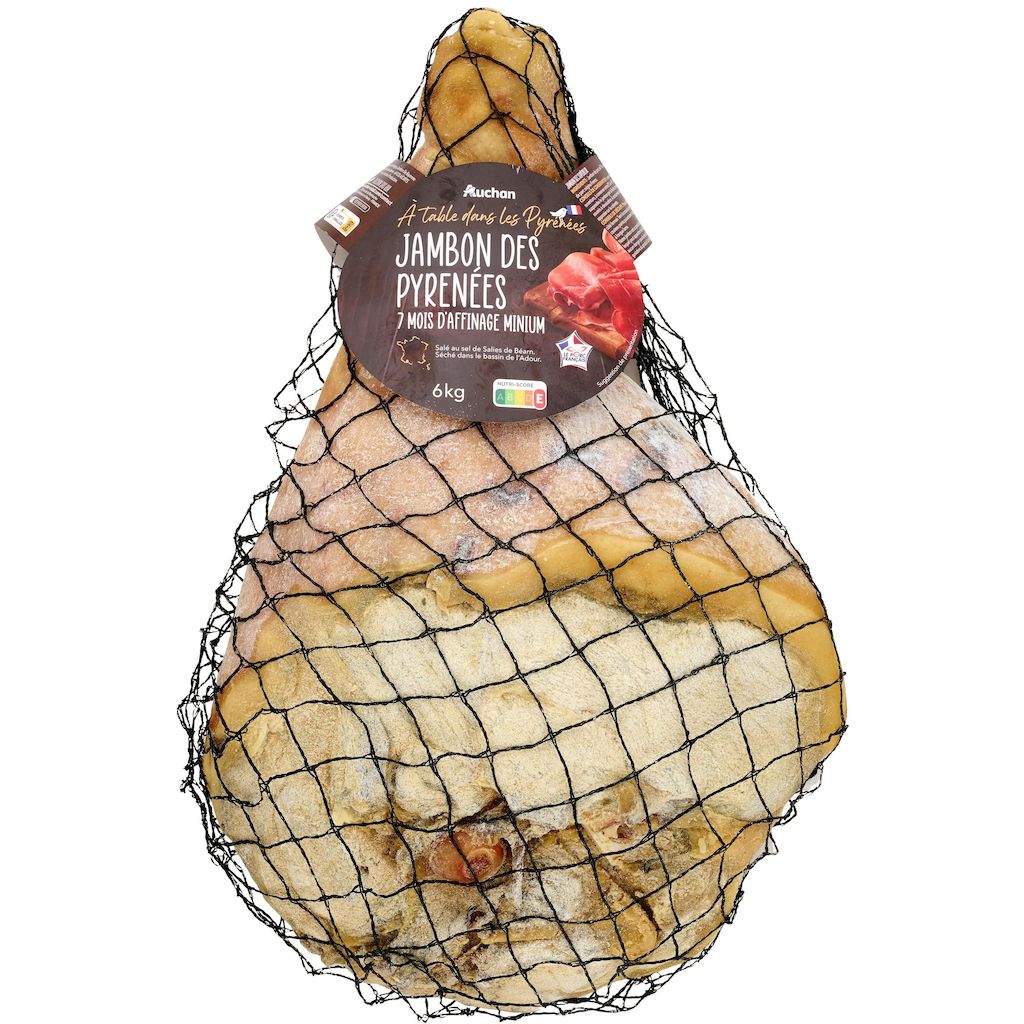 Affiné avec soin au coeur des Pyrénées, ce jambon e,tier révèle des arômes subtils et un goût typique du térroir. Prêt à être tranché, il promet des instants de dégustation généreux et savoureux.