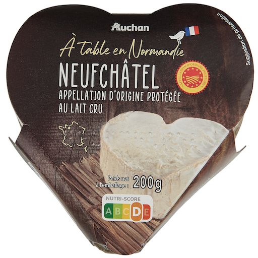 Fromage AOP fabriqué à Neufchâtel en Bray, ce fromage, à la forme de cœur, réserve sous sa fine croûte fleurie une texture fondante dévoilant tous les arômes du lait cru et des notes lactées et salées.
