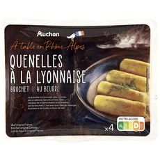 Ingrédients : Œufs frais 28% (origine France), brochet (poisson origine Canada), 20% semoule de blé dur 19% (origine France), eau, beurre 12% (lait origine France), blanc d'œufs 1% (origine France), arôme naturel, sel.Traces éventuelles de moutarde et soja.