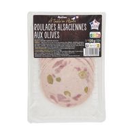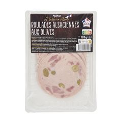 La roulade est une préparation de charcuterie alsacienne cuite qui se consomme tranchée. La roulade aux olives est composée d’une farce fine de porc, avec des morceaux d’olives. Ces tranches sont à déguster froid, en sandwich ou accompagné de salades composées. Accompagne également les soirées raclette ou un plateau apéro de charcuterie cuite.