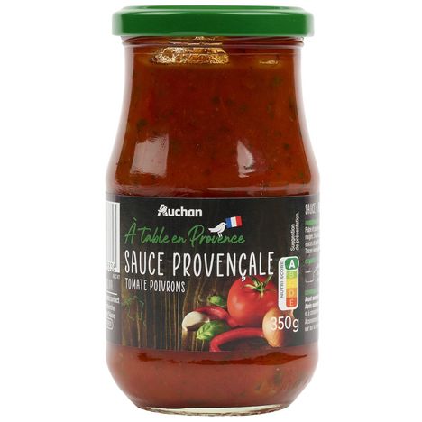 Ingrédients : Pulpe et purée de tomates 83% (tomate origine France), légumes 9% (oignons 6%, poivrons rouges 3%), huile d'olive vierge extra 3%, ail 1.5%, basilic 1.5%, sel, amidon de maïs, épices et plantes aromatiques (persil, poivre, origan). Traces éventuelles de gluten, céleri, lait et moutarde