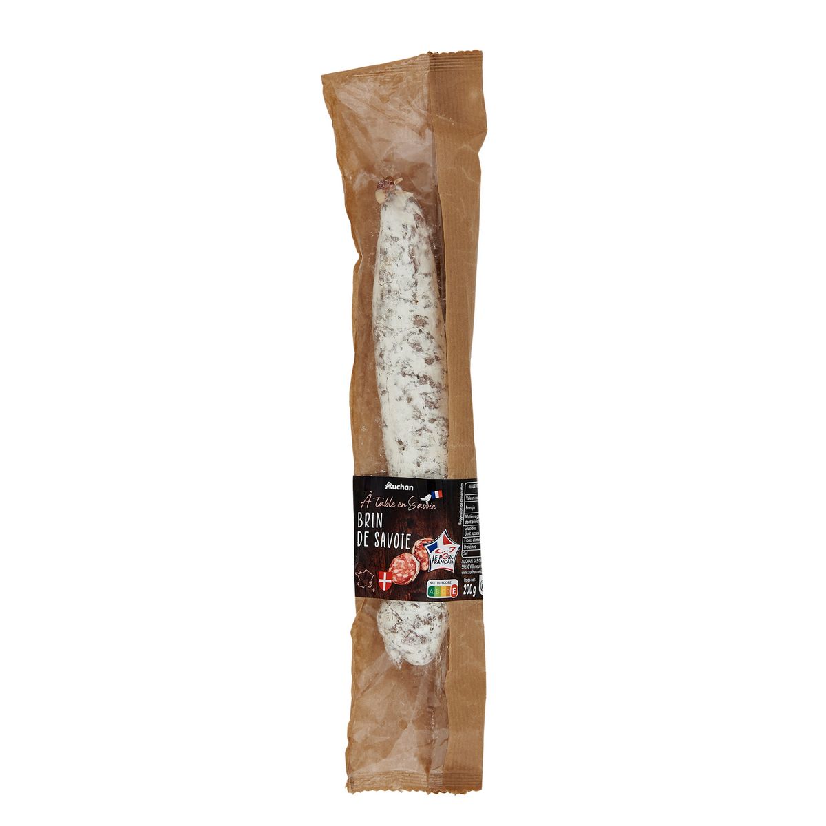 Brin de Savoie 200g fabriqué selon une recette traditionnelle à base de viande de porc origine France, embossé dans un boyau naturel de porc et séché dans nos ateliers pour un saucisson aux saveurs authentiques.