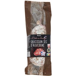Ce saucisson sec IGP Auvergne est fabriqué avec de la viande de porc française, assaisonné d'un mélange d'épices sélectionnées avec soin, relevé d'une pointe d'ail, et séché de longues semaines au pied des volcans d'Auvergne.