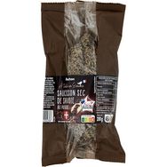Saucisson sec de Savoie au poivre fabriqué selon une recette traditionnelle à base de viande de porc origine France, généreusement fourni de poivre, embossée dans un boyau naturel de porc et séchée au cœur des Alpes pour un saucisson aux saveurs authentiques. L'association du poivre avec l'intensité du saucisson sublimera vos apéritifs !
