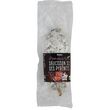 Ingrédients : Viande et gras de porc, sel, lactose (lait), dextrose,poivres, ail, ferments, conservateur : nitrate de potassium, boyau naturel de porc. 156 g de viande sont utilisés pour 100g de produit fini. Elaboré à partir de porc origine France.