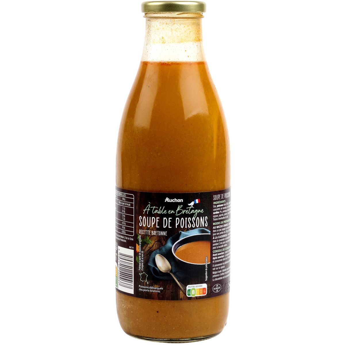 Je ne retrouve pas trop le gout de la soupe de poisson, mais ca c est subjectif. En revanche il y a un depot au fond de la bouteille, comme des mini grains de coquille d huitre, tres desagreable et pas bon. Ne secouez pas la bouteille et ne la consommé pas en entier pour ne pas les avoirs.