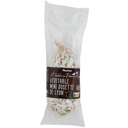 Rosette de Lyon, spécialité de charcuterie séchée en filet, élaborée selon une recette traditionelle avec de la viande de porc origine. Savoureux et authentique, ce produit est idéal pour les amateurs de charcuterie.