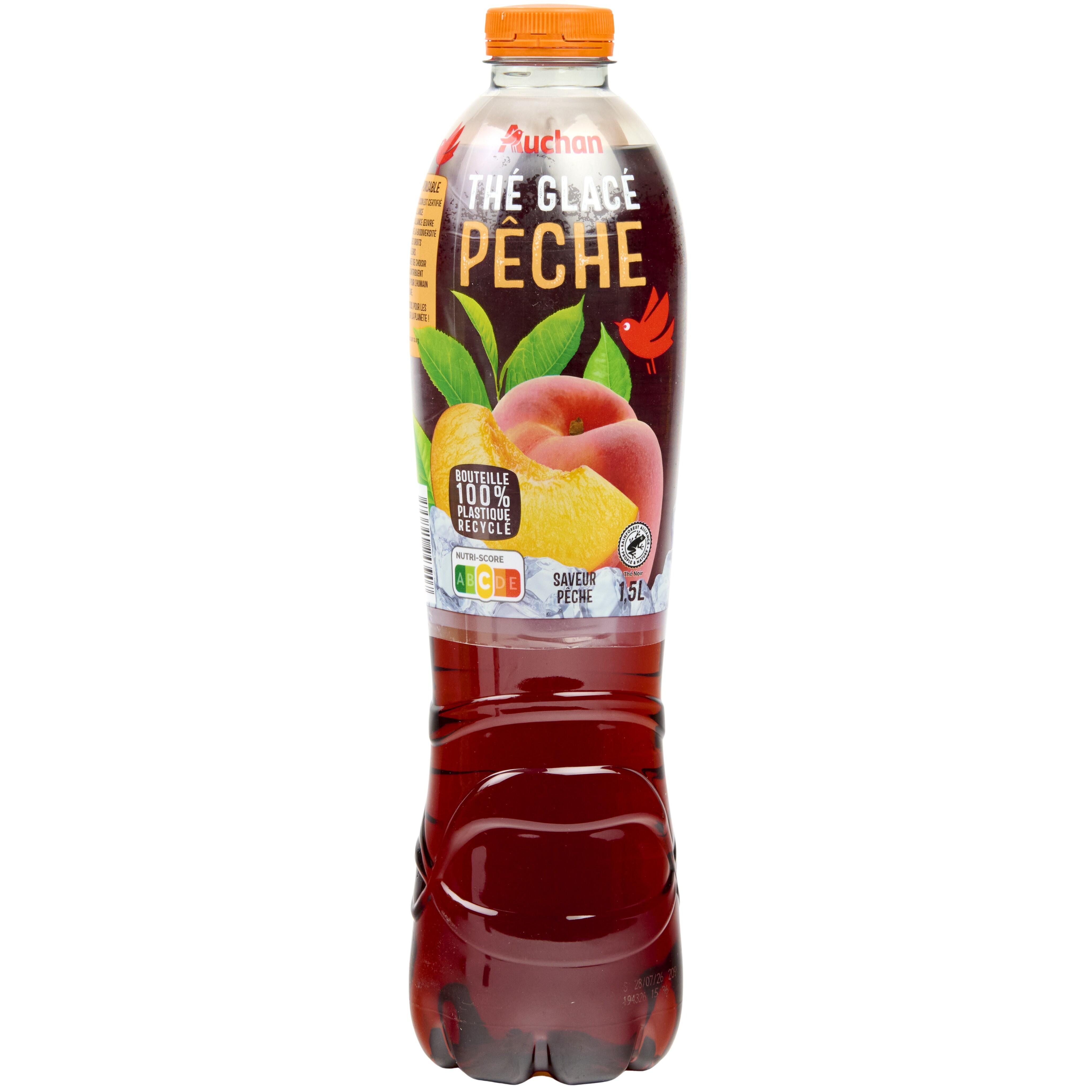 Boisson aux extraits de thé aromatisée, saveur pêche, avec sucre et édulcorant.