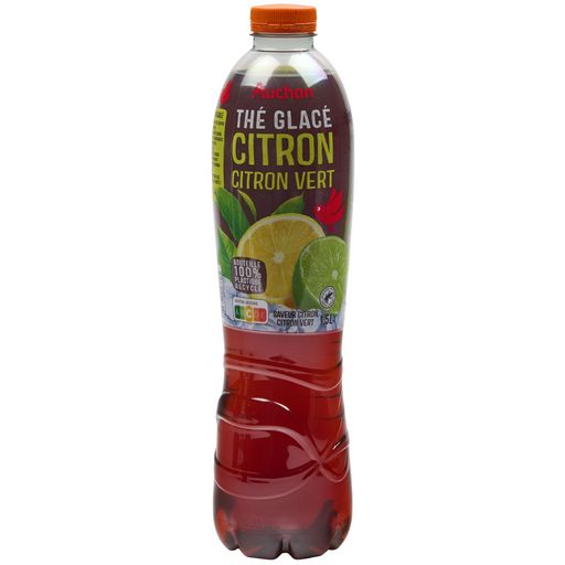 Ingrédients : Eau, sucre, acidifiant : acide citrique, arômes naturels de citron citron vert, extraits de thé noir* (0,12%), jus de citron à base de concentré (0,1%), antioxydant : acide ascorbique, édulcorant : glycosides de séviol issus de Stevia.*Rainforest Alliance Certified.
