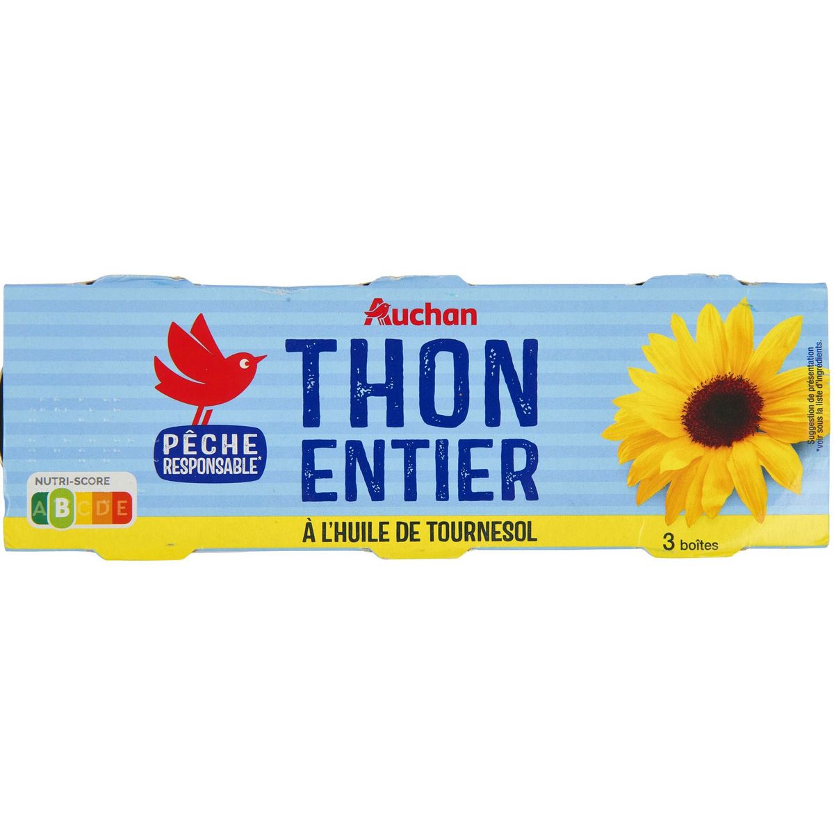 Ingrédients : Thon Listao (POISSON), huile de tournesol 34 %, sel