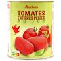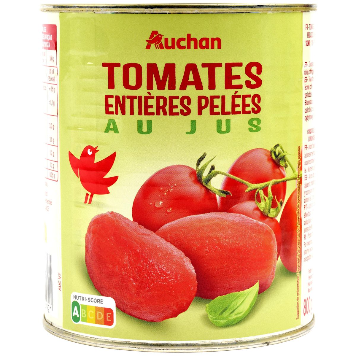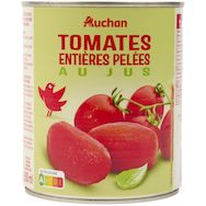 Ingrédients : Tomates entières pelées, jus de tomate, sel acidifiant : acide citrique affermissant : chlorure de calcium.