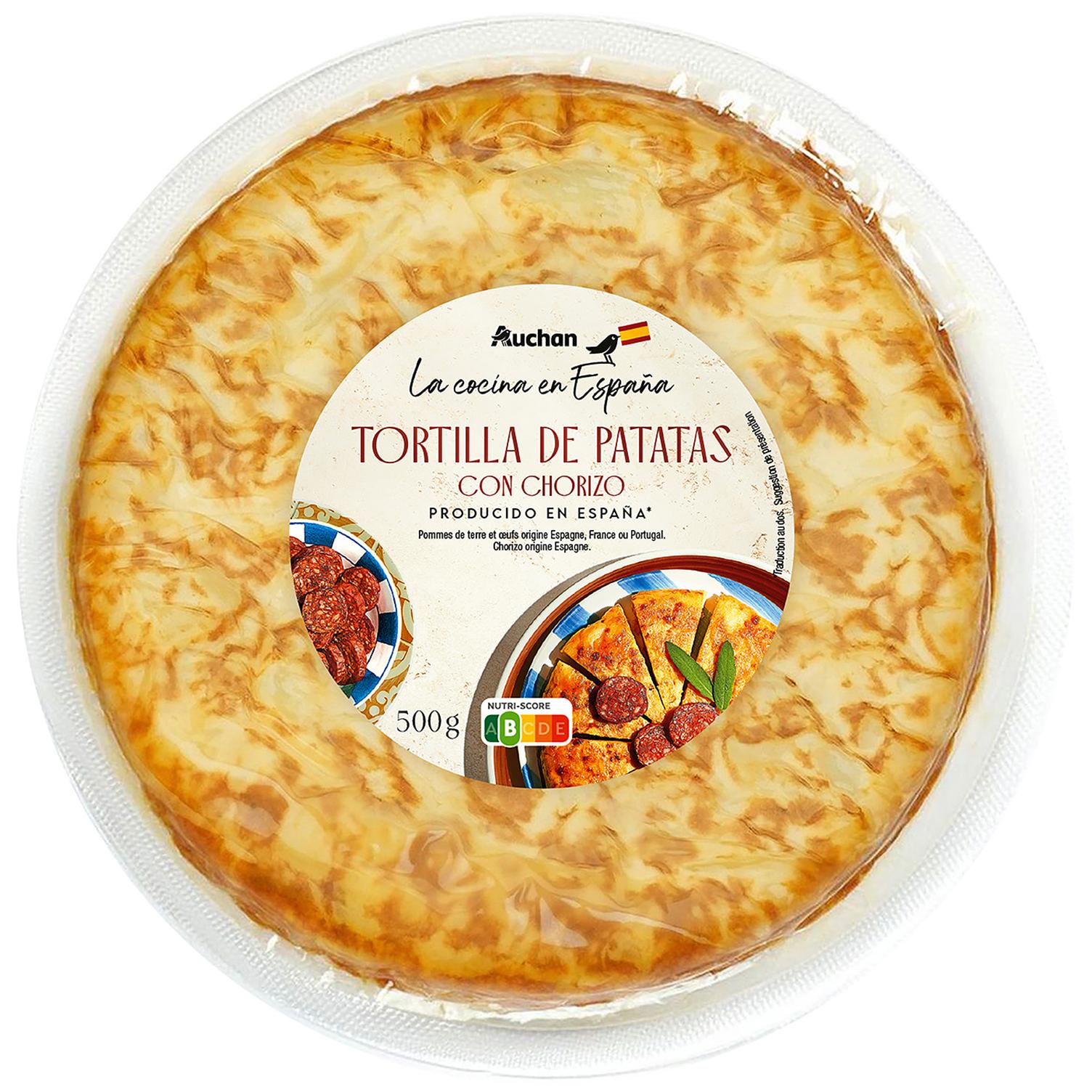 Chorizo espagnol et tortilla combinés ! Avec des ingrédients 100 % naturels, la tortilla au chorizo a une saveur authentiquement espagnole.