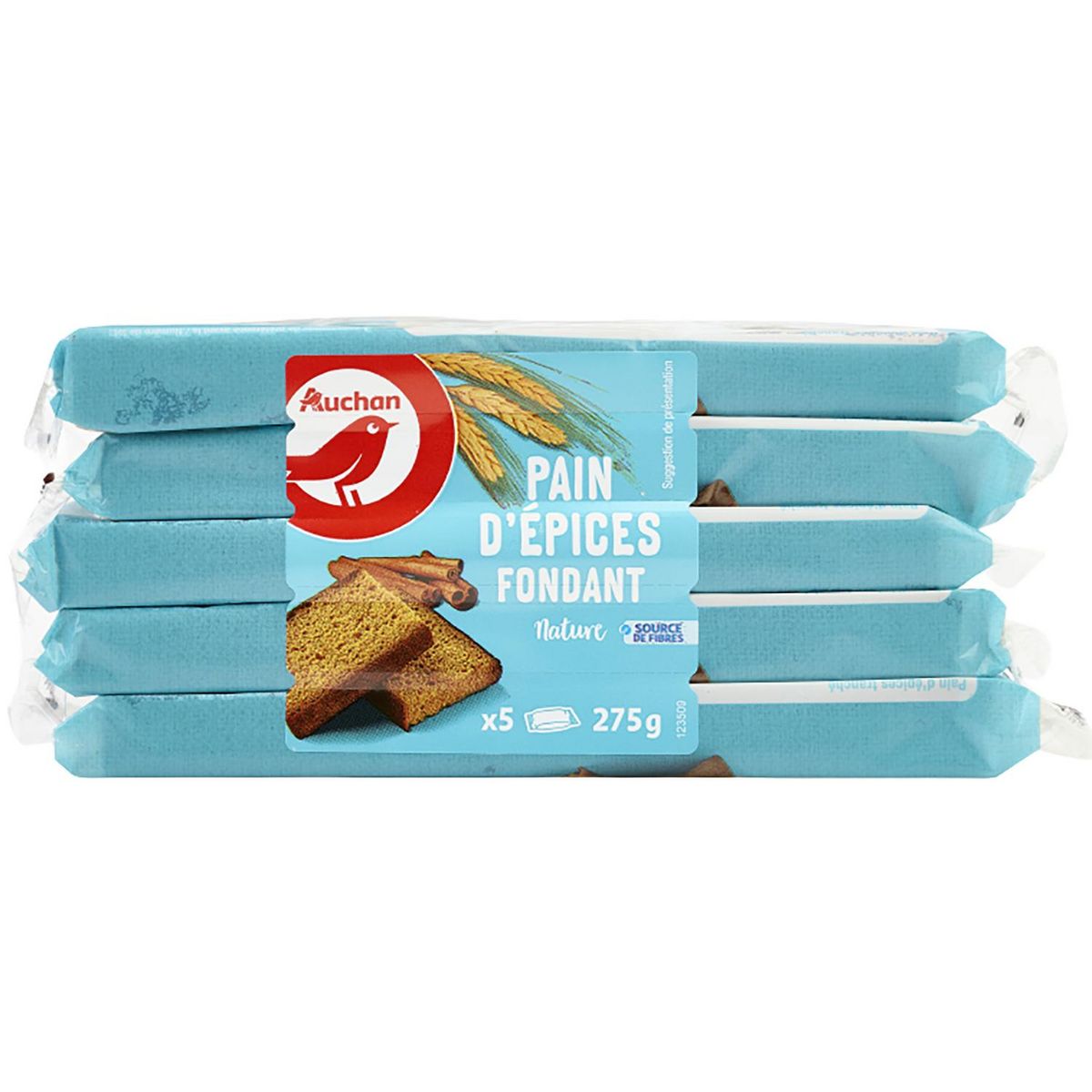 Savourez ce pain d'épices Auchan en format ultra pratique ! 5 tranches emballées individuellement qui permettent d'être emmenées et consommées partout, à la récré, au bureau, à la salle de sport, en restant fondantes et moelleuses.