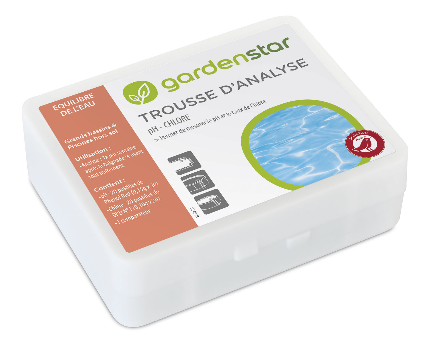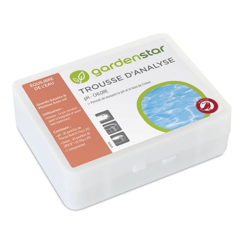 Cette trousse d'analyse contient 40 pastilles pour mesurer le taux du pH et du chlore de l'eau de votre piscine.